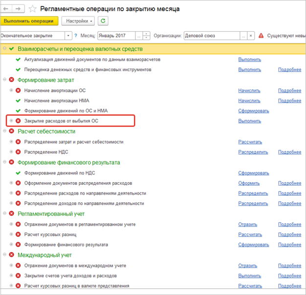 Закрытие месяца в месяце списания (остаточная стоимость > рыночная стоимость)