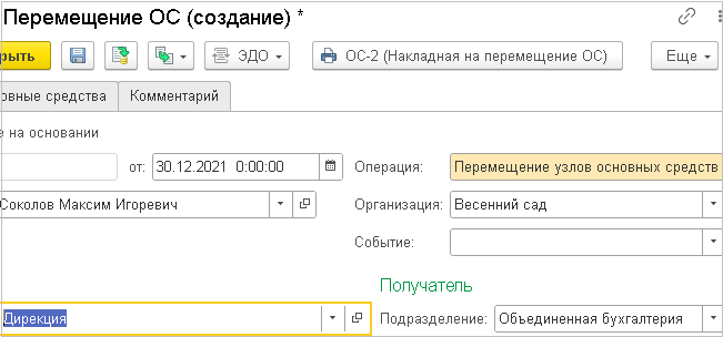Операции с движением компонентов амортизации не поддерживаются. Они двигаются вместе с ОС-владельцем при его перемещении, списании, подготовке к передаче или передаче в аренду и возврате из аренды.