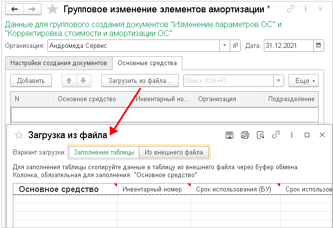 При присоединении можно отдельно указать узлы и компоненты амортизации, но только подчиненные этому основному средству.