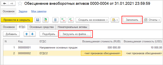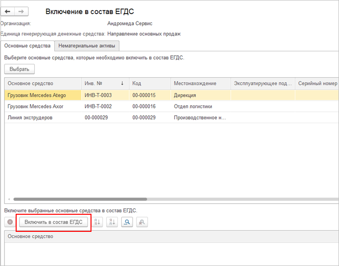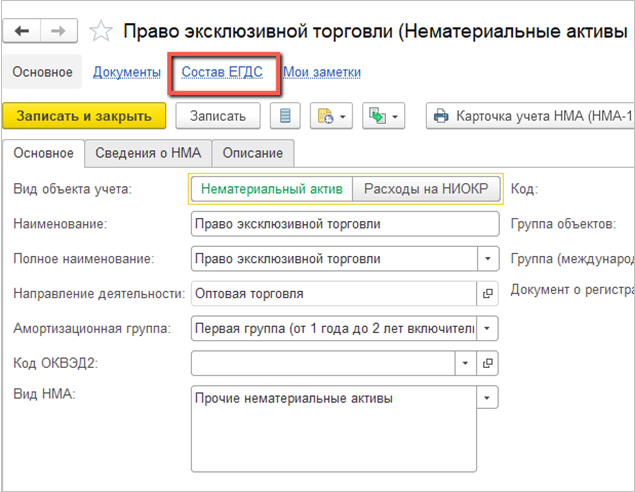 Вхождение ОС и НМА в состав ЕГДС можно проверить по гиперссылке из формы элемента справочников Основные средства и Нематериальные активы и расходы на НИОКР.