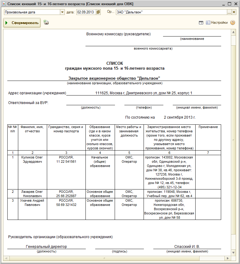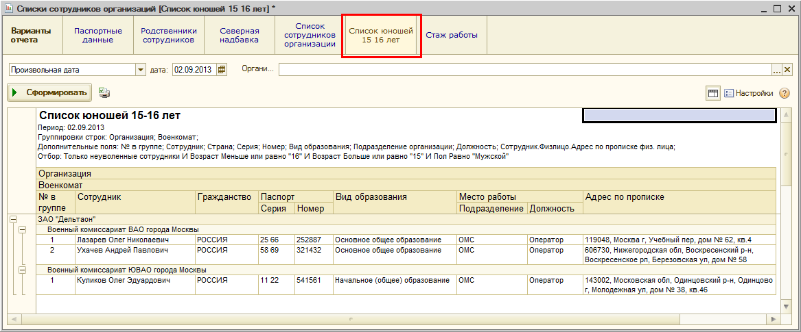 Список юношей 15-16 лет до версии 2.5.67 можно было сформировать только с помощью соответствующего варианта отчета "Списки сотрудников организаций".