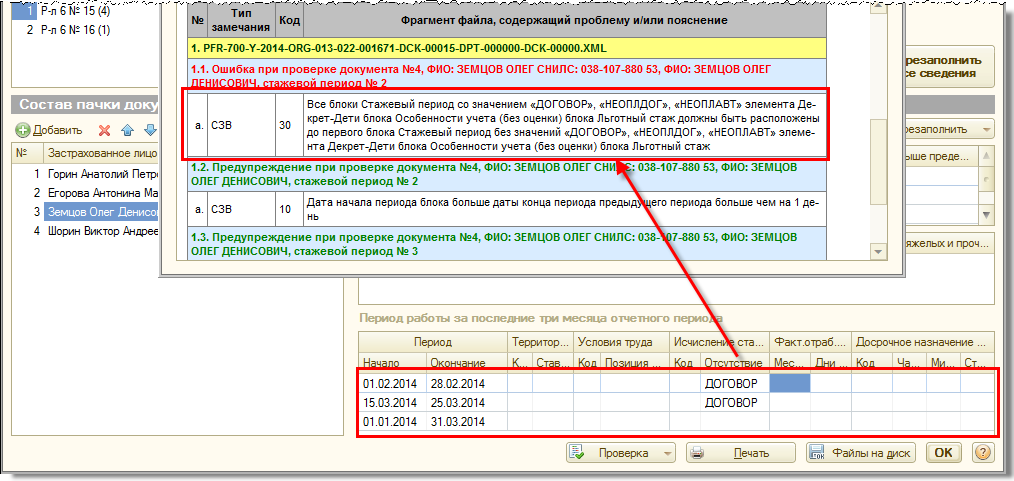 Однако проверочная программа ПФР CheckPfr в версии 1.1.2 от 08.04.2014 перестала «пропускать» такие записи, выдавая ошибку. В описании изменений CheckPfr (файл Version.txt в паке программы) сказано:
