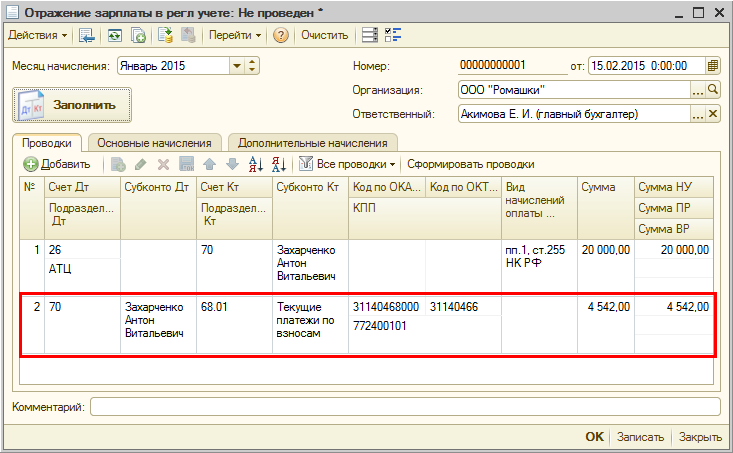 Например, для временно пребывающего сотрудника-нерезидента с окладом 20 000 руб. по его заявлению в январе 2015 г. зарегистрирован авансовый платеж 1 458 руб.