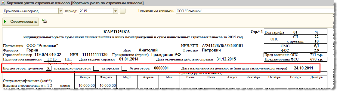 После этого, в связи с изменениями законодательства, в форму карточки в программе вносились соответствующие изменения (рекомендации ПФР и ФСС при этом не обновлялись).