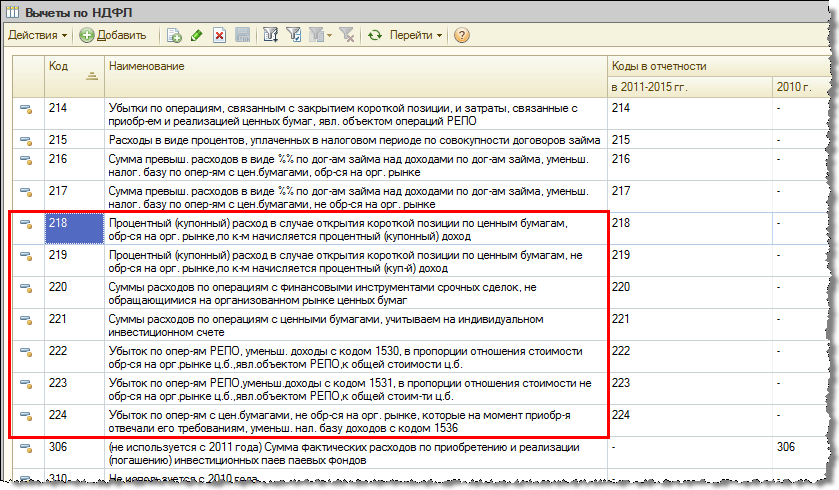 Также для поддержки регистрации таких доходов добавлен новый код дохода 1543 и вычеты 218 – 224.