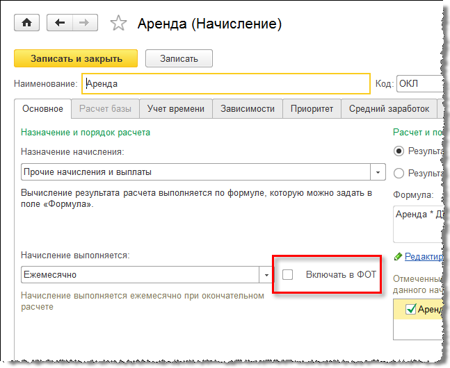 Если флажок установлен, то, как и ранее, при назначении начисления будет рассчитан его вклад в ФОТ. Однако если флажок снят, то начисление не будет влиять на плановый ФОТ сотрудника.