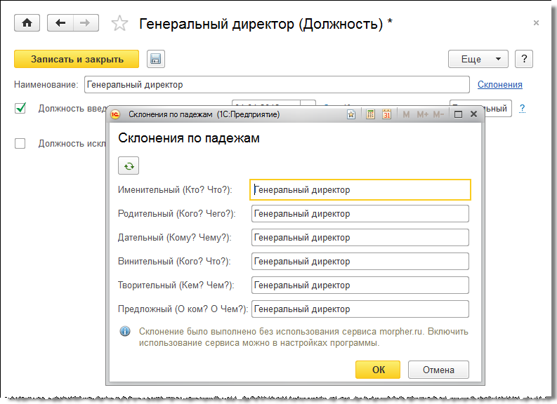 Программа сама будет добавлять подходящее дополнение в зависимости от текущего состояния сотрудника. При этом остается возможность указать любое другое дополнение вручную, и оно также будет учитываться при формировании наименования.
