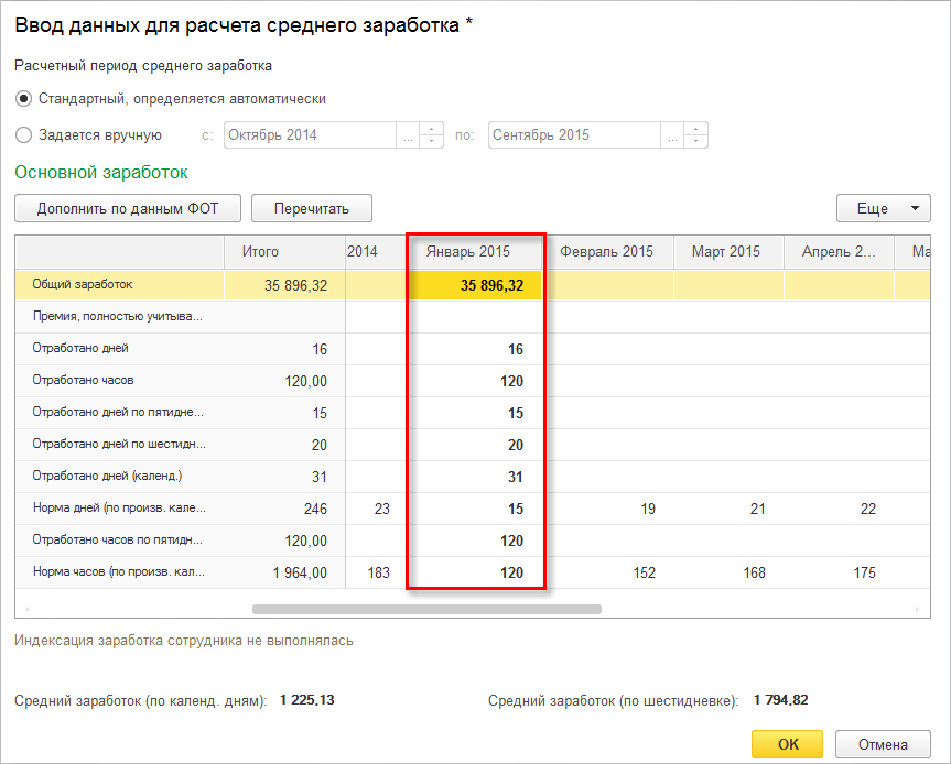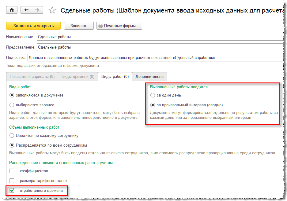Указанная настройка влияет и на заполнение показателя в других ситуациях. Например, из периода действия начисления могут исключаться некоторые «кусочки» за счет регистрации отпуска или больничного. И тогда если сдельная выработка будет зарегистрирована на период, который попадает в период отсутствия сотрудника, то при расчете она учтена не будет (при варианте «по соответствию даты регистрации интервалу начисления»).