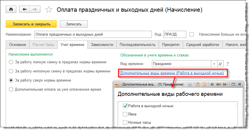 Однако для пользователей со сложными системами оплаты труда, использующими разную оплату за разные виды времени (оплата водителям, работа вахтовым методом и др.) такое ограничение не позволяло удобным образом настроить специфические начисления. Кроме того, это излишне усложняло настройку различных доплат (например, за работу в выходные ночью).