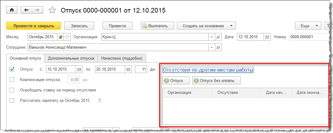 Обращаем внимание, что, как и прежде, окончательное право на отпуск определяется согласно данным, указанным именно в кадровых документах. Возможность указать число дней в позиции реализована лишь для более удобного оформления приказов.