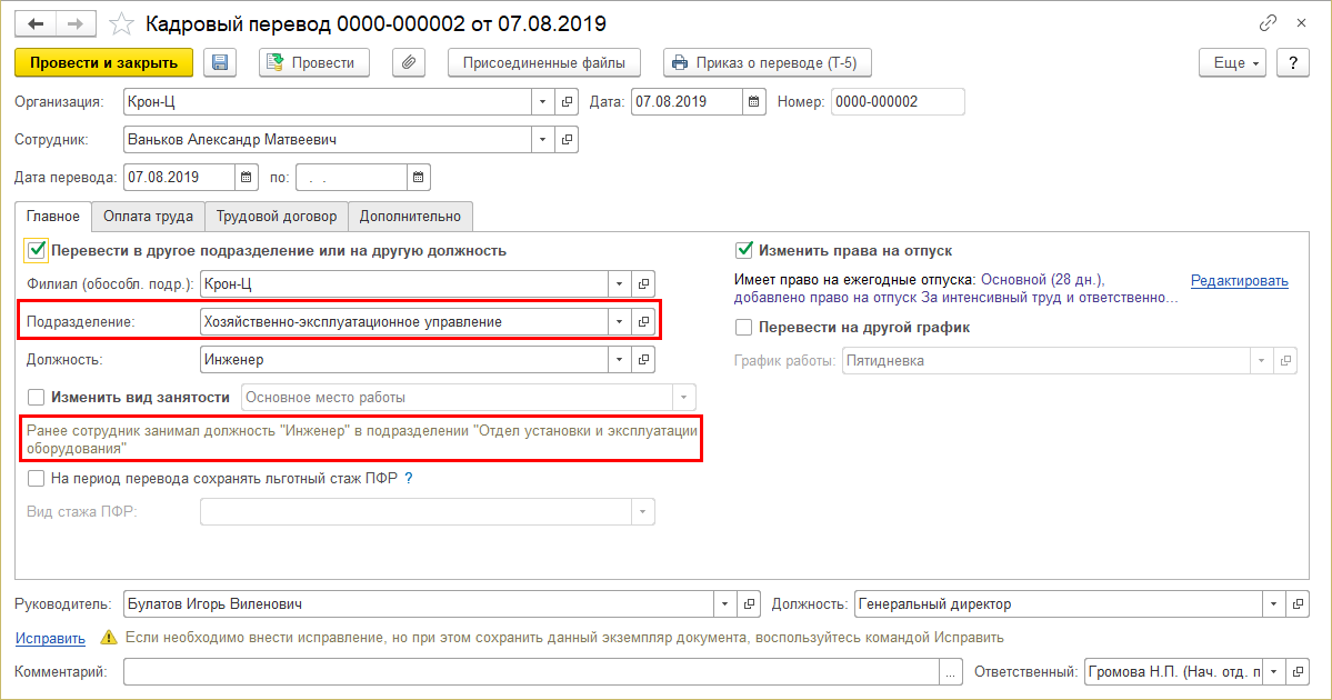 Теперь объем отработанного времени и размер тарифной ставки сотрудника заполняются с учетом подразделения, выбранного в шапке документа: