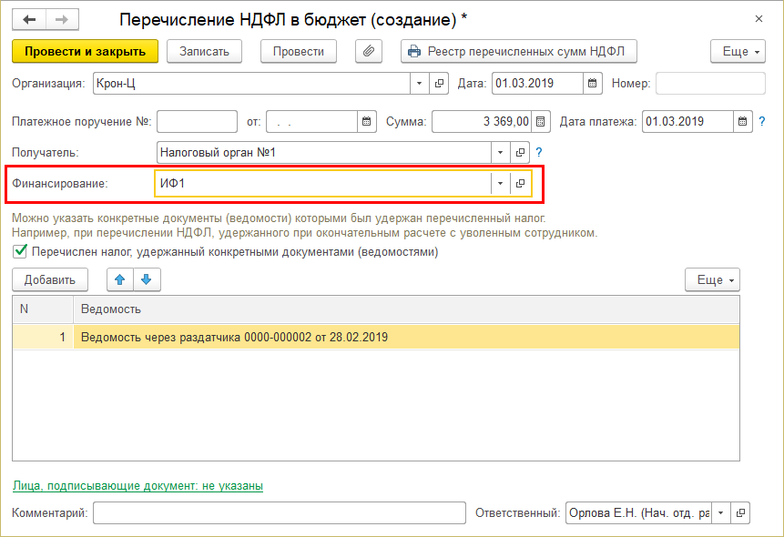 Если ведется учет по статьям финансирования, то учет удержанного и перечисленного НДФЛ теперь также ведется в разрезе статей.