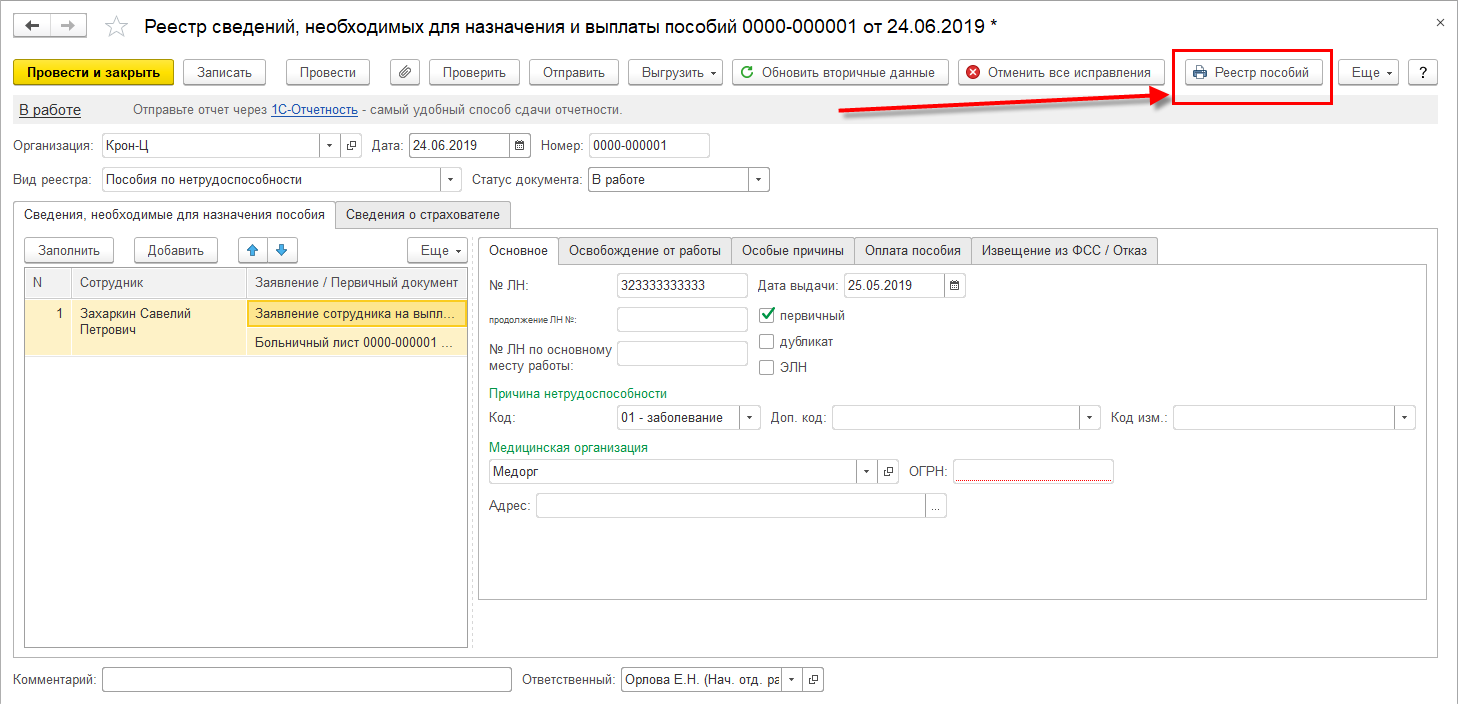 Добавлена возможность сформировать печатную форму реестров пособий ФСС.