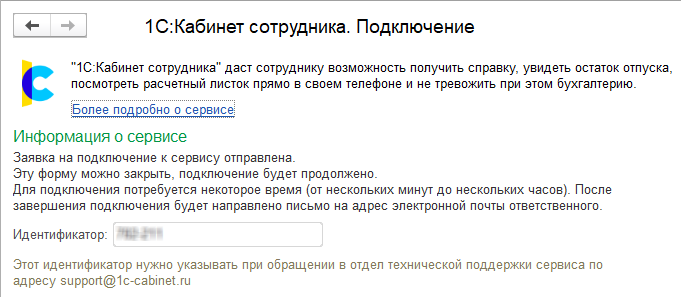 Общее описание нового сервиса "1С:Кабинет сотрудника" и условия использования приведены на портале ИТС, а также по ссылкам в самой программе.