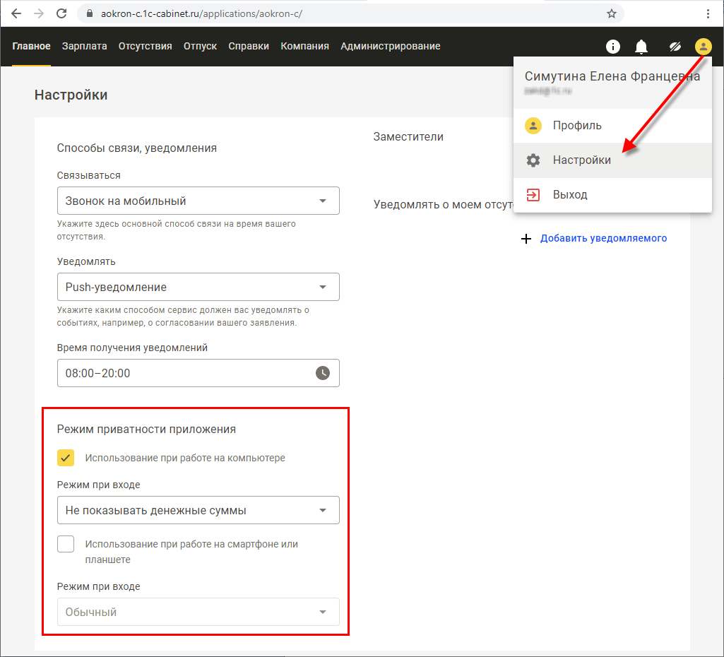 Каждый сотрудник может настроить удобный для себя режим отображения информации в настройках своего профиля.