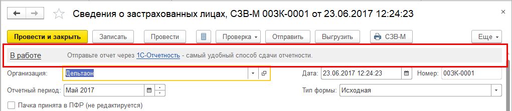 А также ранее после отправки отчета в ПФР документ оставался полностью доступен для редактирования. Некоторые пользователи перезаполняли уже отправленный отчет данными по другой организации, что приводило к путанице и сорванным срокам сдачи отчетности. В связи с этим реализован запрет на изменение организации и периода в документах ПФР после их отправки.