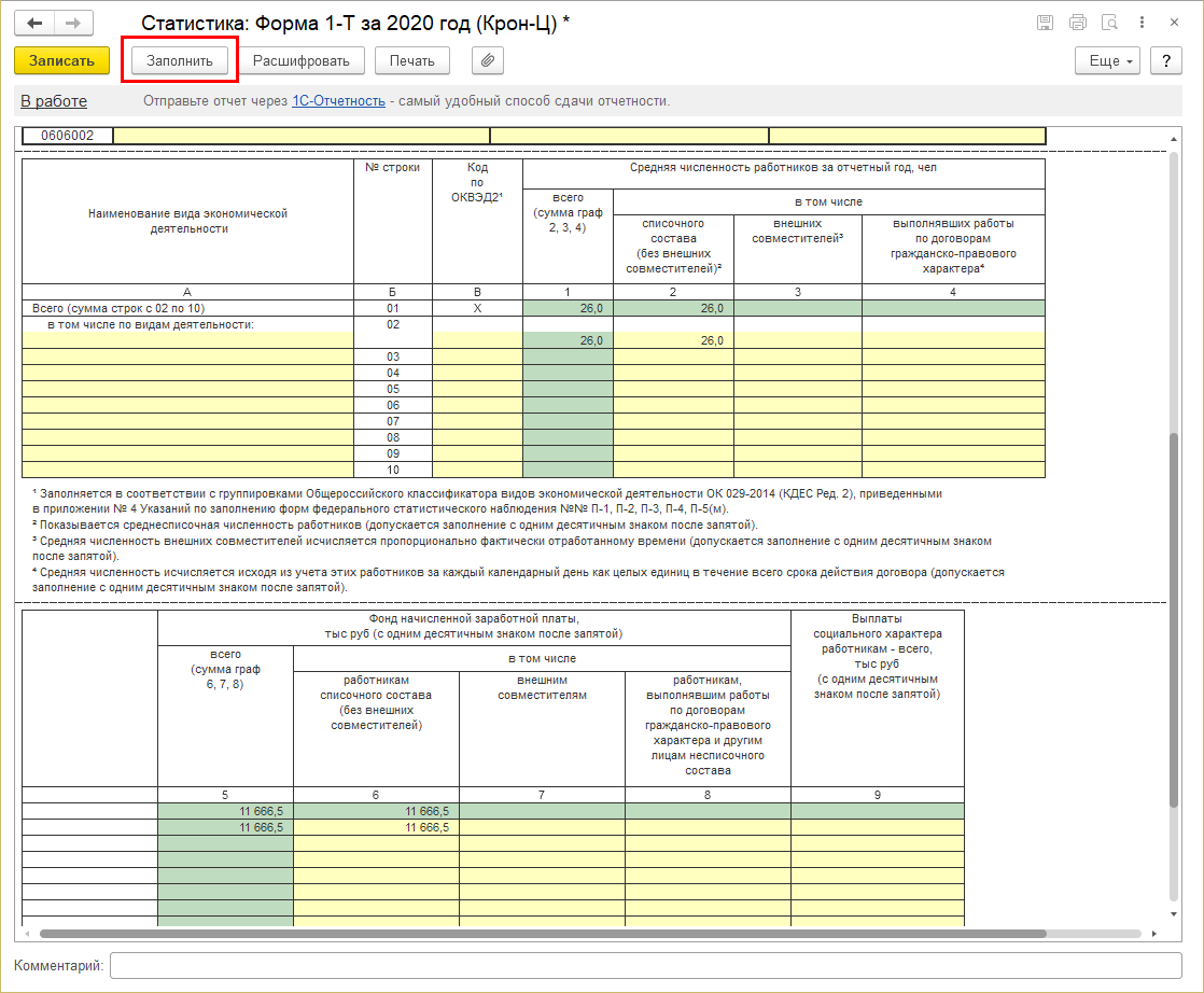 Реализовано автоматическое заполнение формы статистики 1-Т (начиная с отчета за 2020 год).