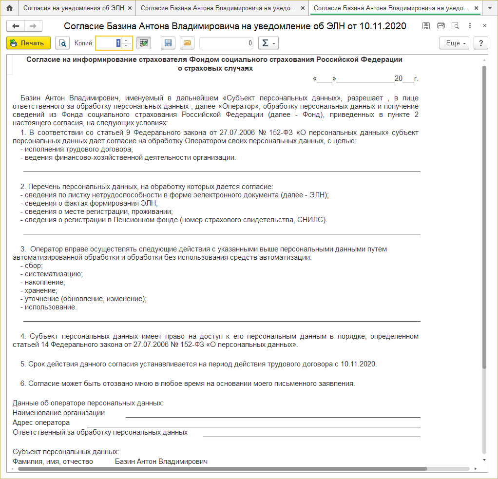 Обновлена печатная форма согласия застрахованного лица для СЭДО согласно новым требованиям ФСС.