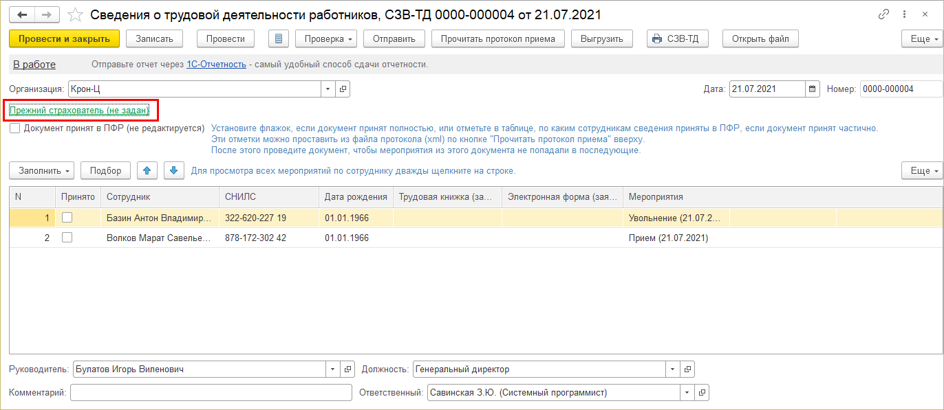 Произведено обновление печатной формы и формата файла СЗВ-ТД с 01.07.2021, в соответствии с Постановлением Правления ПФ РФ от 27.10.2020 № 769п.