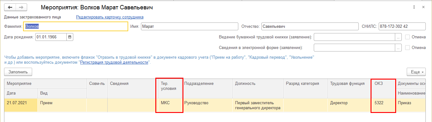 В документах СЗВ-ТД с датой 01.07.2021 и более: