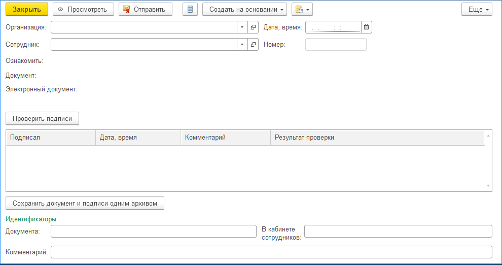 Улучшена форма документа кадрового ЭДО. Добавлены кнопки: