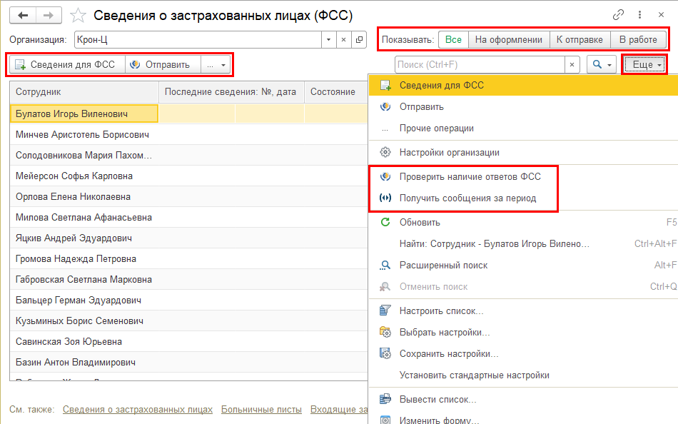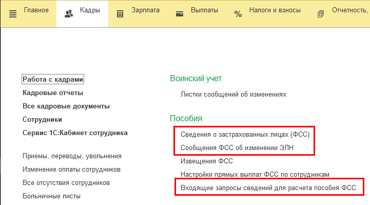 3) Теперь, с 2022 года, получение сообщений ФСС об изменении ЭЛН доступно всем страхователям (раньше ФСС оформлял специальные соглашения с единичными участниками пилотной эксплуатации сервиса): раздел Кадры - "Сообщения ФСС об изменении ЭЛН". И получать от сотрудников согласия на это теперь не потребуется.