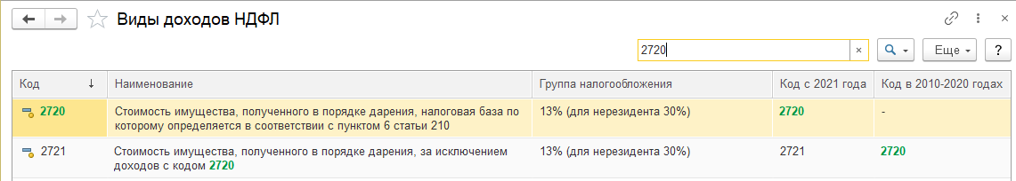 Имеющийся ранее код дохода 2720 с 2021 года изменен на 2721, добавлен новый код дохода 2720.