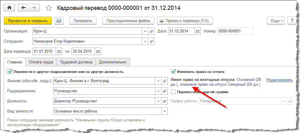 Т.е. те 4 месяца, в течение которых сотрудник не имел права на северный отпуск (01.01.2015 – 30.04.2015) "продлевали" рабочий год так же, как это происходит в случае отпуска по уходу за ребенком.