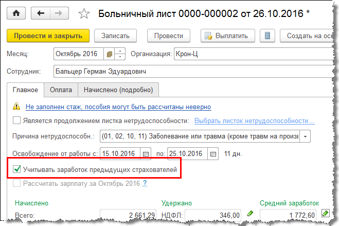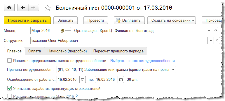 В версии 3.1.2 в документе "Больничный лист" флажок перенесен со второй закладки "Оплата" на первую закладку "Главное" и теперь устанавливается по умолчанию.