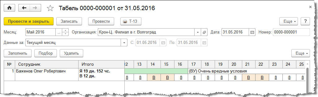 Сотрудник полмесяца проработал в этих условиях, что было зарегистрировано в табеле.
