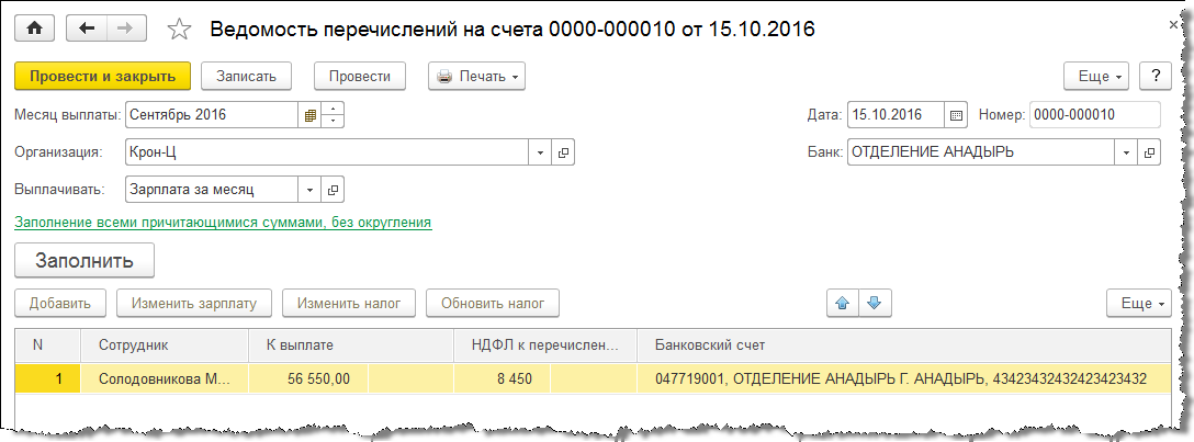 В версии 3.1.2 это неудобство устранено. Теперь вместе с ведомостью перечислений на счета в БП передаются указанные в ней банковские счета сотрудников.