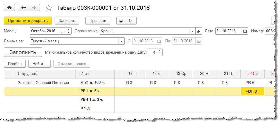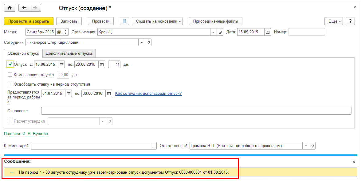 Зачастую пользователи по ошибке или в связи со сложившимися реально обстоятельствами могут вводить разные документы регистрации отсутствий сотрудников на один и тот же период.