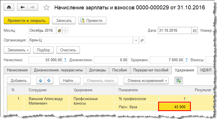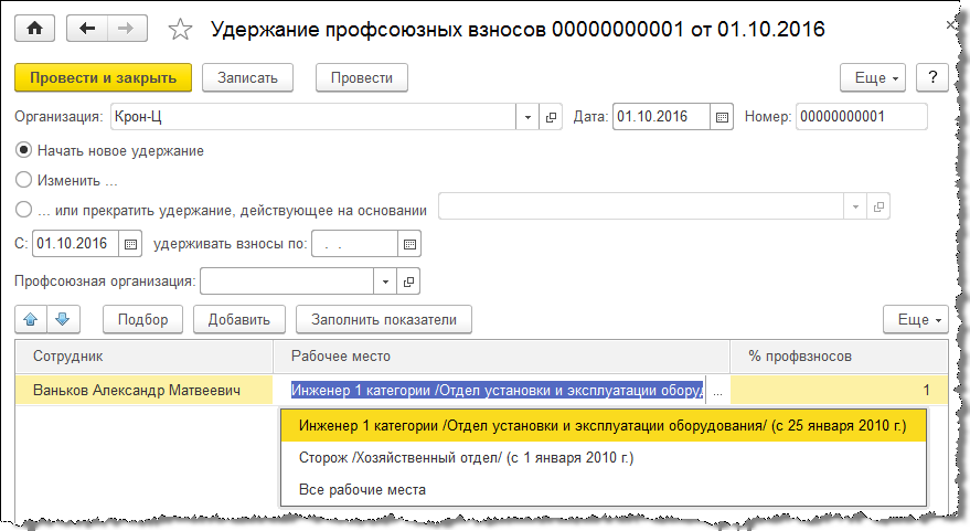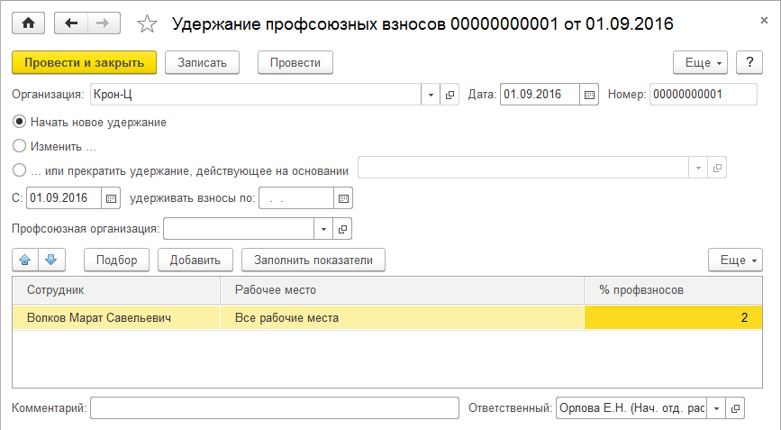 Например, сотруднику с 1 сентября назначили удержание профвзносов в размере 2%.