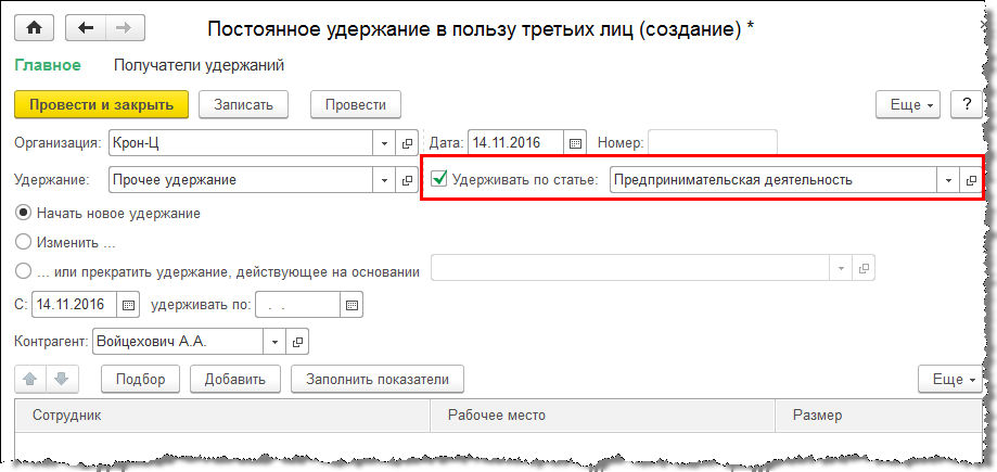 Ранее плановые удержания можно было назначать только по всем рабочим местам сотрудника одновременно. Например, если сотрудник работает на основном месте работы и по внутреннему совместительству, то нельзя было указать, что профсоюзные взносы следует удерживать только по основному месту.