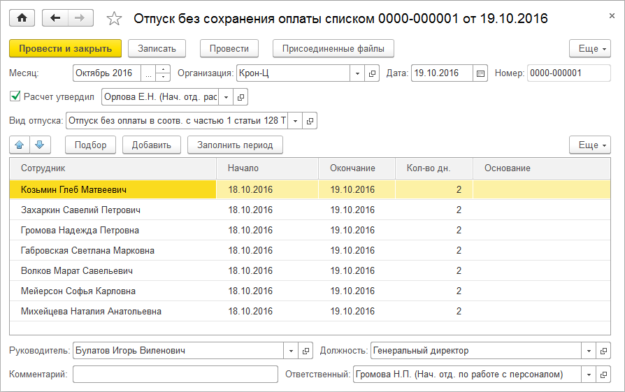 Зачастую может возникать потребность массового оформления отпусков без сохранения оплаты, причем как нескольким сотрудникам на один и тот же период, так и одному сотруднику на разные периоды.
