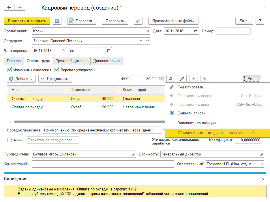 Ранее при изменении плановых начислений можно было в одной строке прекратить какое-то начисление, и в другой его же назначить. С точки зрения производительности программы это не оптимально. Оптимально такое изменение отражать одной строкой – просто изменить размер в ней.
