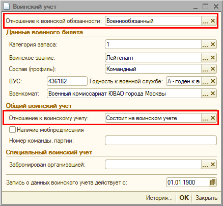 Обращаем внимание, что до версии 2.5.67 категория запаса (которая показывается, например, в карточке Т-2 и в отчетности в военкоматы) выбиралась из перечня: