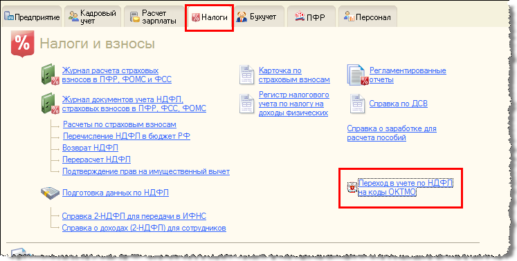 При регистрации документом «Перечисление НДФЛ в бюджет РФ» сумм уплаченного в 2014 году налога потребуется выбрать код ОКТМО, а не ОКАТО (среди указанных в карточке организации или обособленных подразделений).