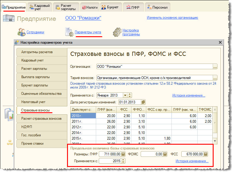 В программе в связи с этим пользователю ничего изменять не требуется. Взносы в 2015 году автоматически начнут рассчитываться по новому тарифу.