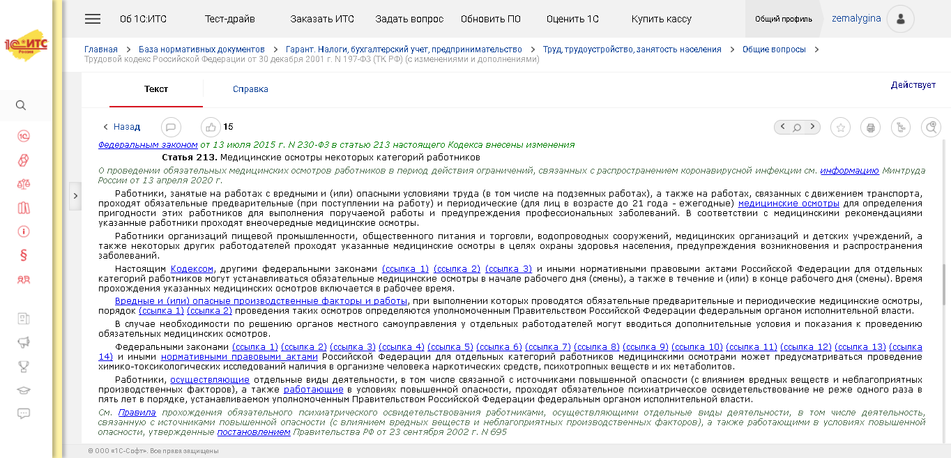 Теперь в программе перечень вредных и (или) опасных производственных факторов и выполняемых работ, при наличии которых проводятся обязательные предварительные и периодические медицинские осмотры, утвержденный Приказом Минздрава России от 28.01.2021 № 29н, хранится в одноименном справочнике раздела Охрана труда. Справочник содержит перечень, описание факторов и видов работ, и необходимую периодичность медосмотров.