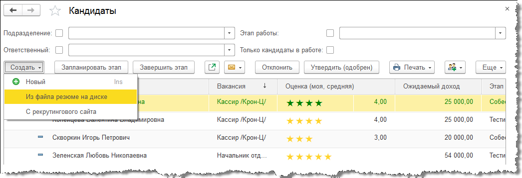 В версии 3.1.4 реализована возможность множественного планирования и завершения этапа работы с кандидатами, множественного утверждения и отклонения кандидатов.