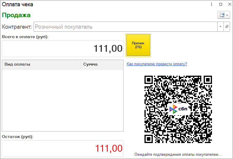 В «1С:Рознице» с версии 2.3.10 поддерживается прием оплат и формирование возвратов через Систему быстрых платежей (СБП) в новом РМК.