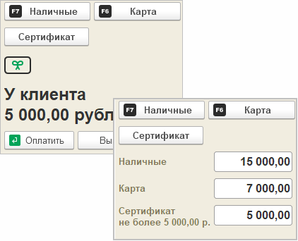 В новом РМК предусмотрена и оплата подарочными сертификатами, которые можно вводить вручную или считывать сканером. Кассир всегда видит оставшуюся сумму по сертификату на экране и при необходимости может оформить сложную оплату.