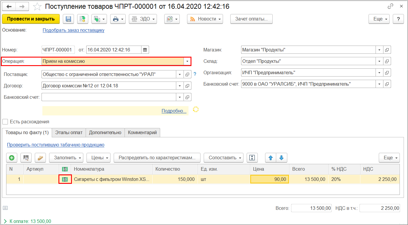 В документе Поступление товаров появилась возможность принимать на комиссию маркированный товар.