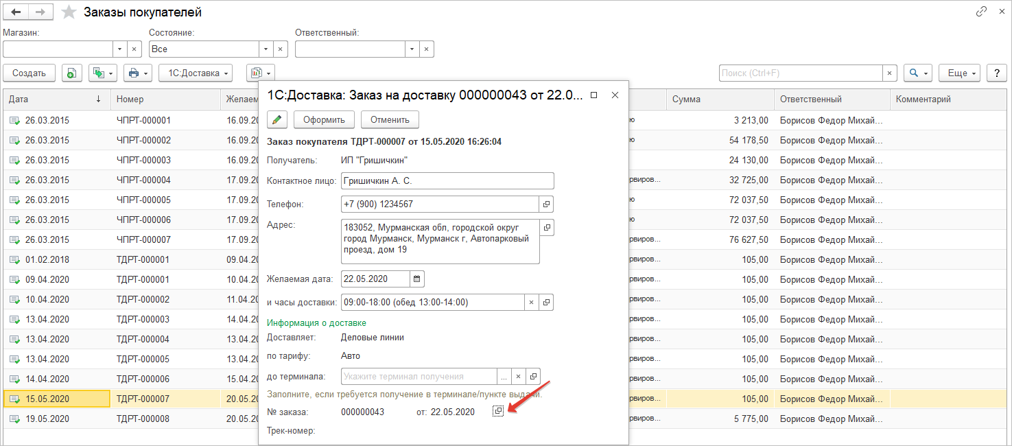 При этом форма Заказа на доставку стала гораздо компактнее и лаконичнее. А с помощью специальной кнопки можно перейти в привычную и более подробную форму документа.