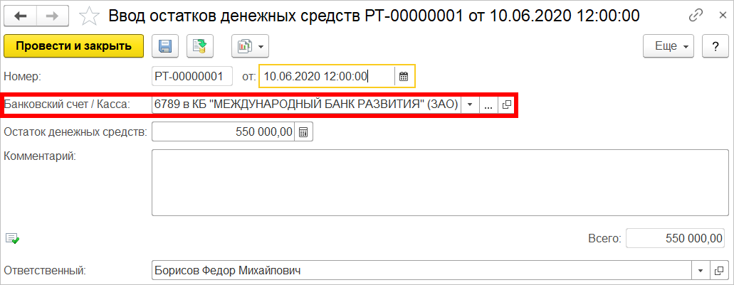 При включении учета станет активной ссылка для перехода к документам для ввода остатков денежных средств в разрезе банковских счетов организаций.