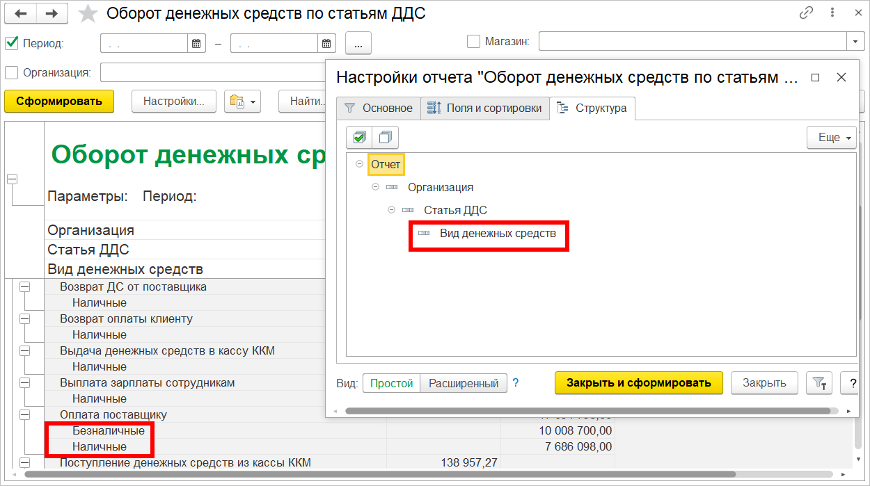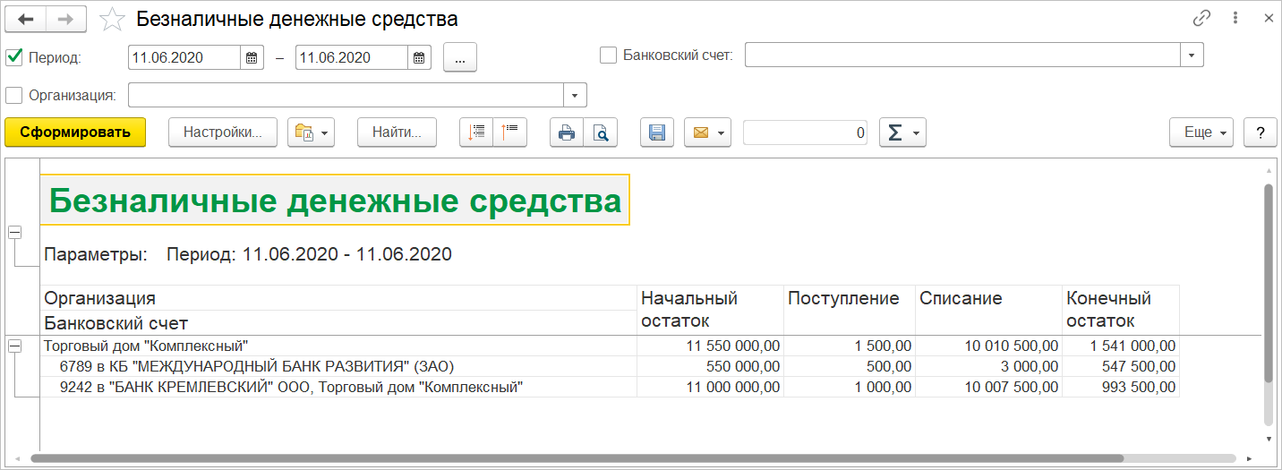 Помочь пользователю контролировать и анализировать обороты и остатки безналичных ДС предназначены специализированные отчеты.