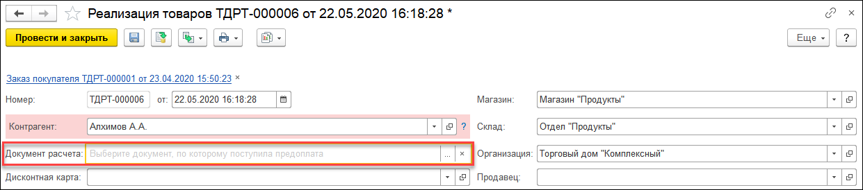Для корректного закрытия авансов у пользователя появилась возможность указывать документ предоплаты в документах отгрузки.