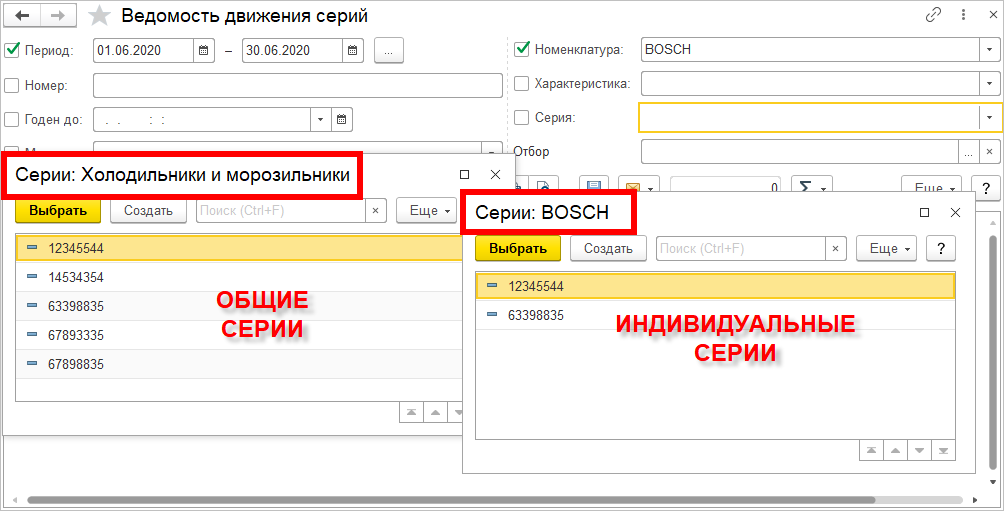 Отчеты и формы подбора научились работать с разными владельцами серий и характеристик.