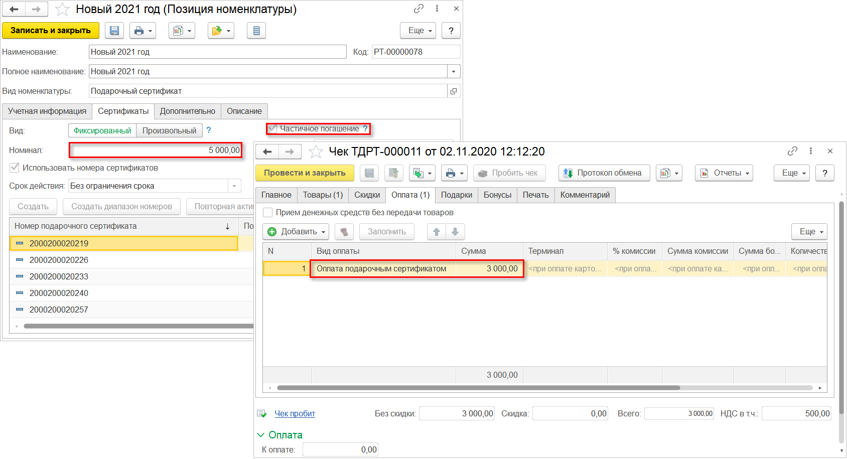Если подарочный сертификат был частично погашен, то у кассира имеется возможность вернуть покупателю неизрасходованный остаток по сертификату.